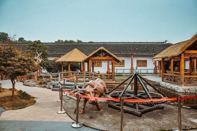 “憶園”,是蓮花島上兩處收門票的景點之一,位于蓮花島的東北角,也是我們行程中的最后一個景點。園如其名,主要是讓游客追憶陽澄湖的水鄉(xiāng)風情,進入景區(qū),大廳內(nèi)是介紹蓮花的歷史人文故事,出大廳是一個很大的花園,這里擺放著很多古代的農(nóng)作工具,比如說水牛拉車、水井、漁網(wǎng)、釘耙等等,讓游客了解以前勞動人民的生活環(huán)境。