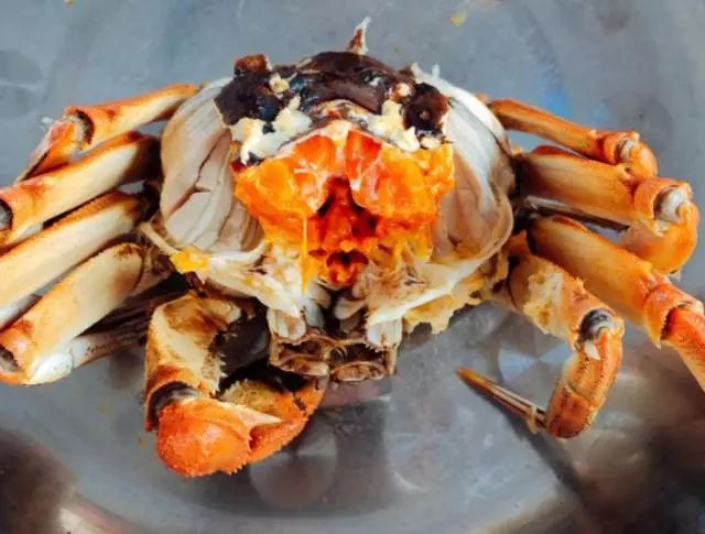 桔紅色的蟹黃,白色的蟹膏,潔白而又嫩的蟹肉…,掰開蟹殼,蟹黃中的蟹油就冒了出來。真是一道人間美味。把一只雌蟹吃掉,把另一只雄蟹拆掉。肥美的蟹膏伴著咀嚼,在唇齒間慢慢融化。講究吃蟹的老客,會(huì)沾上一點(diǎn)調(diào)料,增加自己的品味。綿綿的蟹膏讓舌上有一層鮮嫩的甜味,吃了幾天后,還會(huì)久久地回味。