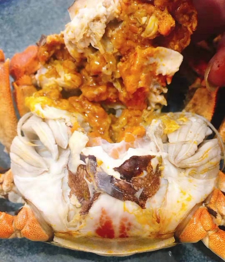 我品嘗了蓮花島顧記蟹莊的招牌菜以及一部分農(nóng)家菜,我尤為喜歡,清蒸大閘蟹,由于是清蒸的關(guān)系,大閘蟹的鮮味緊緊鎖在肉里,保留大閘蟹最大限度的原汁原味,掀開蟹蓋鮮香撲鼻,蟹黃金黃入眼。把雪白的蟹肉放進(jìn)嘴里,回味無窮,配上湖邊美景和秋日涼風(fēng),簡直是一場視覺的盛宴。